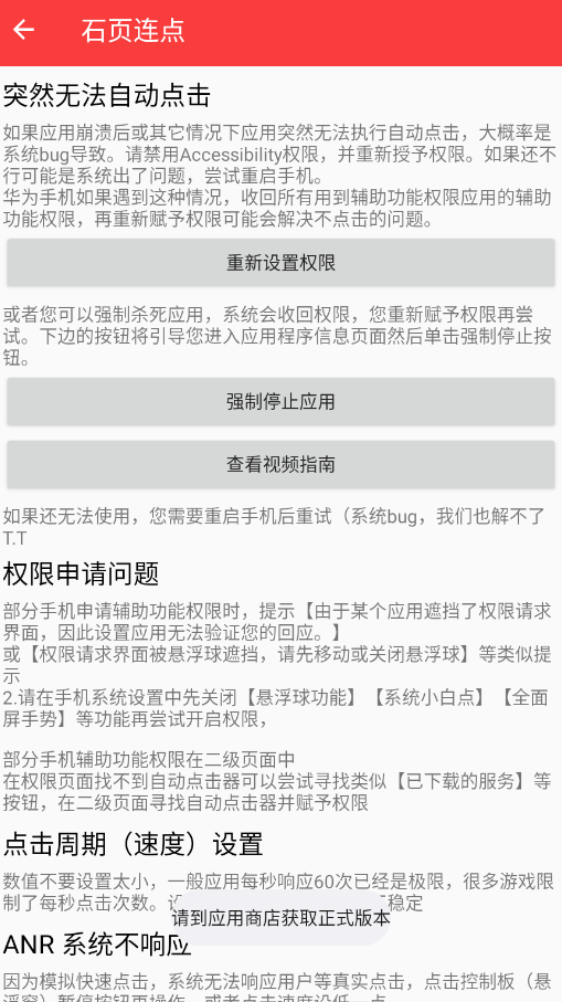石页连点是一款基于系统无障碍服务的自动化操作工具,无需获取手机Root权限即可稳定运行。模拟屏幕点击与滑动操作,覆盖游戏挂机、应用测试、阅读翻页等多种重复性任务场景。用户自定义点击坐标、频率和循环次数,配合悬浮控制面板实现一键启停。内置的脚本录制与调用机制简化了复杂流程的配置,整个运行过程无广告干扰,也不存在后台窃取隐私数据的行为。
