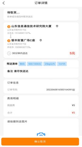 4、到达取件地点后,按照指示完成取件操作,系统会实时更新订单状态。
