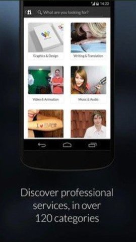 1、首先,下载并安装Fiverr应用,打开后你将看到一个简洁的首页,展示了不同类别的服务。