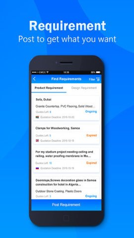 2、询盘发布:买家可以通过简单的操作发布询盘,快速获取多个供应商的报价,节省时间和精力。
