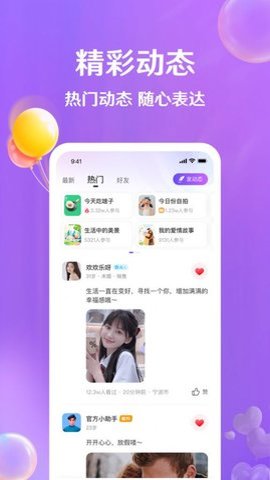 3、动态发布:发布自己的动态,分享生活点滴,吸引关注和互动。