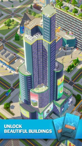 1、找到卡片来解锁新的创造物,并升级它们以提升现有的基础设施,带来更高的城市效益。