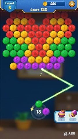 1、游戏的核心机制是发射泡泡,玩家需要通过瞄准和发射来将相同颜色的泡泡连接在一起,从而实现消除。每次成功消除都会获得分数奖励,推动玩家不断挑战更高的分数。