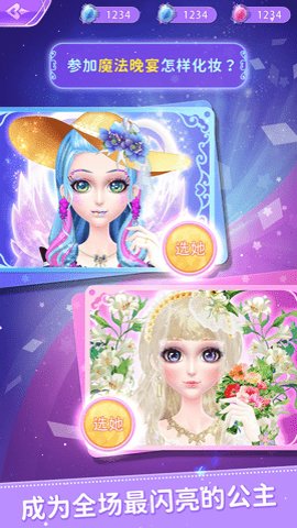 1、化妆是游戏的核心,玩家需要根据舞会的主题和公主的特点,为她选择合适的妆容和服装。