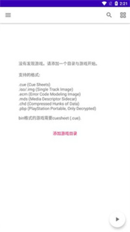 2、支持导入多种常见格式的游戏镜像文件,例如ISO、BIN搭配CUE文件,以及压缩格式PBP。