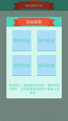 1、在铁杆粉丝等级中,玩家需要根据周杰伦的演唱来猜测歌曲名,这一环节考验的是对其演唱风格的熟悉程度。