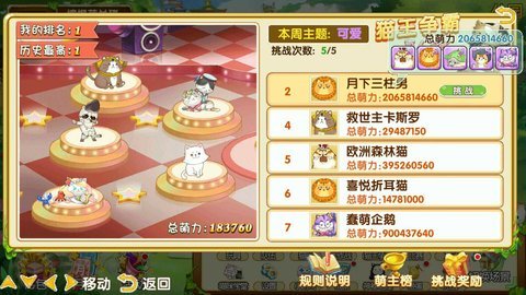 3、选美大赛为玩家提供了展示自己猫咪的舞台,玩家可以通过精心打扮和搭配,争夺各种奖项,增强游戏的趣味性和竞争性。