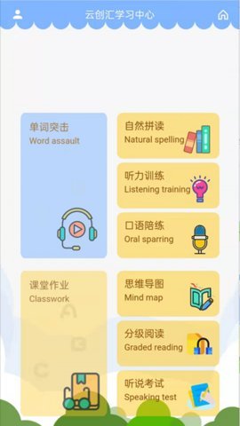 2、注册后,进入主界面,选择“学习模块”,根据自己的需求选择单词突击、听力训练或口语陪练等功能。