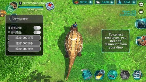 1、恐龙驯兽师的内置作弊菜单为玩家提供了无限钻石和技能无冷却等强大功能,使得游戏体验更加顺畅和刺激。