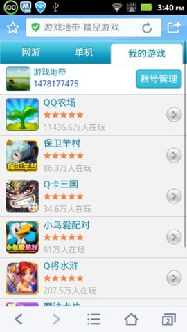 2、游戏地带的“QQ牧场”与PC端互动,玩家可以在手机上继续他们在电脑上的游戏进度,体验无缝衔接的乐趣。