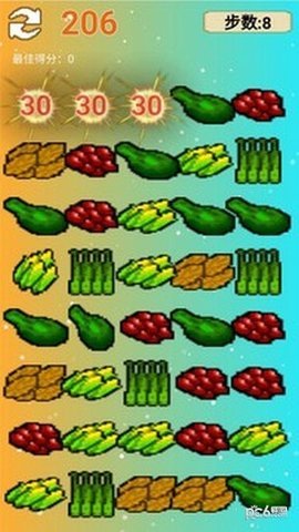 1、玩家需要通过滑动手指将相同颜色的蔬菜进行消除,形成连锁反应,获取高分。