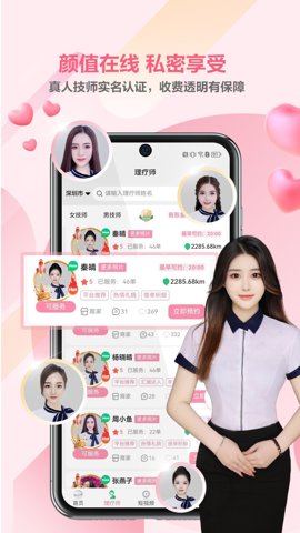 3、支持在线选技师,根据技师的照片、评价和距离等信息做出选择,享受个性化的服务体验。