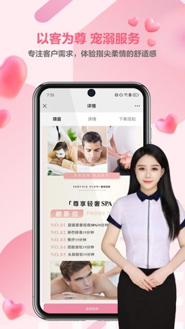 1、在线预约,随时选择技师和服务类型,快速完成预约,享受高效的上门服务。