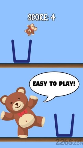 茶杯泰迪熊的玩法非常简单,玩家只需通过轻触屏幕来控制泰迪熊的飞行。每当玩家点击屏幕时,泰迪熊就会向上飞起。目标是将它精准地放入茶杯中。随着游戏的进行,茶杯的移动速度会逐渐加快,这时玩家需要更加专注,准确判断时机,确保泰迪熊能够顺利落入茶杯。