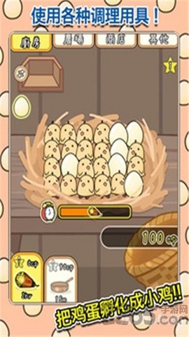 3、厨房环境的管理也是游戏的一大亮点,玩家需要定期清理厨房,保持环境整洁,才能孵化出健康的小鸡,避免出现病鸡的情况。