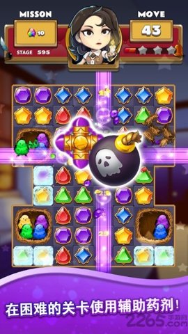 除了基本的消除玩法,游戏还引入了道具系统。玩家可以在每个关卡开始前选择适合的道具,比如可以消除一整行珠宝的“直线炸弹”,或者是可以随机打乱珠宝位置的“混乱球”。这些道具能够帮助玩家在面对困难关卡时更轻松地完成目标,提升游戏的策略性。