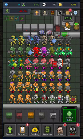 合并僵尸是一款充满创意的像素风休闲游戏,你将化身为生物武器的研究博士,运用你的智慧和策略,培养出一支强大的僵尸作战军队。游戏的背景设定在一个被遗弃的实验室,玩家需要通过合成和强化僵尸,来抵御各种敌人。每一次合成都可能让你的僵尸战士变得更强,带来意想不到的战斗效果。在这个充满挑战与乐趣的世界里,策略与运气并重,快来体验这场僵尸战争吧!