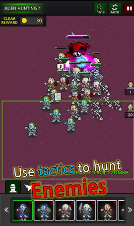 3、在狩猎模式中,点击右下角的狩猎按钮,开始冒险,战斗是自动进行的,你只需在合适的时机生成新的僵尸,保持队伍的战斗力。