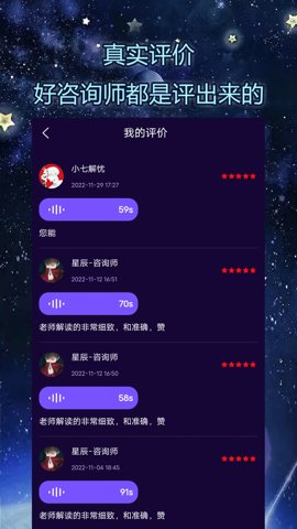 问星app拥有一支经过严格筛选的专业咨询师团队,所有咨询师都经过客户评价制考核,确保服务质量优质可靠。