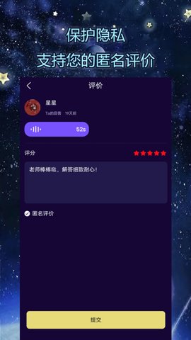 问星app提供匿名评价功能,您在使用过程中可以选择匿名,确保您的个人信息和咨询内容得到保护。