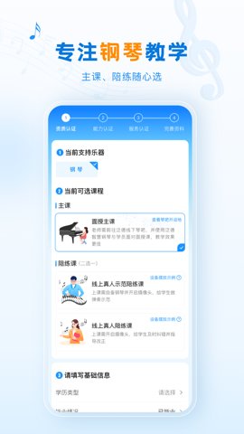 您可以下载泛德音乐老师端app,点击注册按钮,按照提示填写相关信息,完成注册即可。