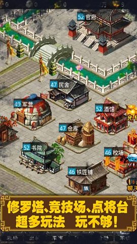玩家可以招募到多种历史名将,每个将领都有独特的技能和属性,玩家可以根据自己的战斗风格选择合适的将领,形成个性化的战斗阵容。