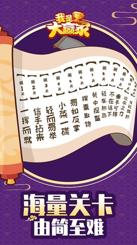 在“我是大赢家”这款汉字成语答题游戏中,玩家可以尽情挑战各种有趣的题目关卡,收获丰厚的奖励。游戏的操作十分简单,无论是年轻人还是老年人都能轻松上手。你可以通过回答问题来获取金币,进而购买豪宅,享受升级带来的快乐。游戏的设计理念是寓教于乐,旨在帮助玩家在轻松的氛围中巩固学习,提升脑力。通过简单的点击屏幕,你不仅能收获知识,还能享受游戏带来的乐趣,适合全家人一起参与。