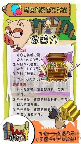 除了工作和交易,游戏中还有许多任务和挑战等待玩家去完成。完成这些任务不仅能获得金币奖励,还能解锁更多的剧情和成就,让你在游戏中感受到成就感。比如,成为百万富翁或股神等目标,都是玩家努力的方向。通过不断的努力,玩家可以体验到从贫民窟到富人区的华丽转变。
