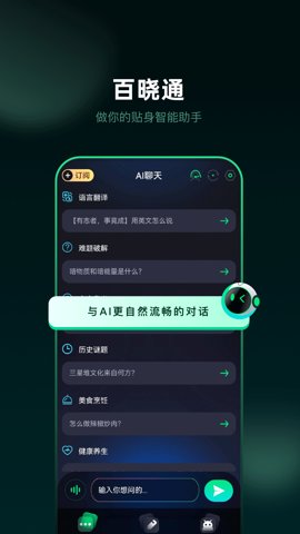 3、支持语音输入,通过语音与百晓通进行交流,提升互动的便利性和趣味性。