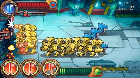 敌人种类繁多,从普通的机器人到强大的外星战舰,玩家需要时刻保持警惕,及时调整战术来应对不同的敌人。随着关卡的深入,敌人的强度和数量也会逐渐增加,玩家需要不断提升自己的策略和反应能力,以应对更大的挑战。每一次成功的防御都能带来丰厚的奖励,帮助玩家在后续关卡中更好地发展。