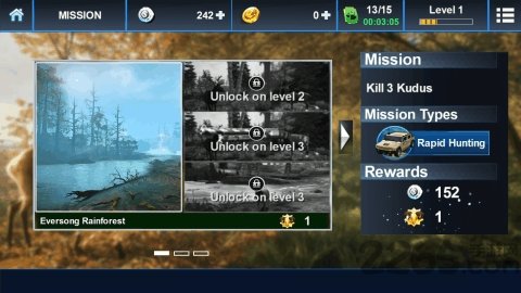 1、游戏设有多个狩猎地点,每个地点都有不同的动物和环境特征,玩家可以在不同的场景中体验多样的狩猎乐趣。