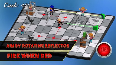 在银行抢劫游戏中,玩家的主要任务是将角色从起点移动到终点,成功收集现金。每当你移动到一个新点时,都会遇到各种障碍物和敌人,必须灵活运用反光板等道具,调整射击角度,确保每一次射击都能精准命中目标。合理的移动和射击策略是成功的关键。