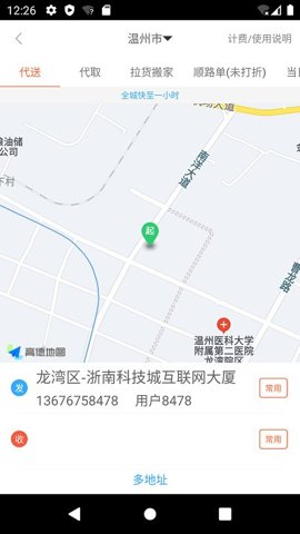 1、代我送功能,用户只需在线填写相关信息,跑腿人员会在规定时间内取货并送达,省去用户的时间和精力。