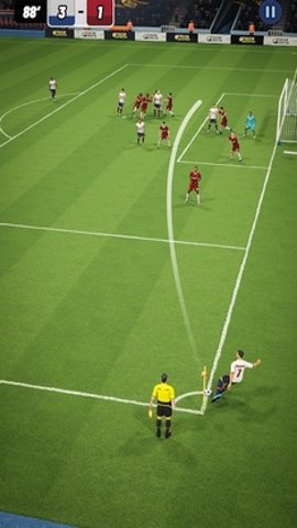 2、操作方式极为简单,您只需轻轻滑动手指,就能打出流畅的过人配合与精彩的射门,智能AI的设计让游戏体验更为真实,助力您在联赛中崭露头角。
