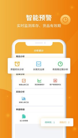 4、智能库存预警系统,帮助用户合理安排库存量和采购周期,降低库存损失,提高资金利用率。