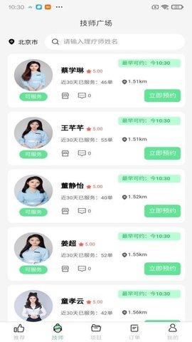 3、从列表中选择一位技师,确认其可预约的服务时间后,点击立即预约并完成在线支付。