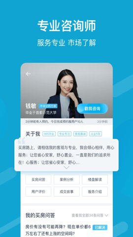 3、房产咨询师在线解答,用户在购房过程中遇到的任何问题都可以随时向专业人士咨询,获得及时的帮助。