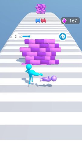 1、玩家需要与其他小人竞技格斗,能升级自己的拳头,为了获得更高的奖励,努力收集哑铃并在关底猛烈的攻击吧。