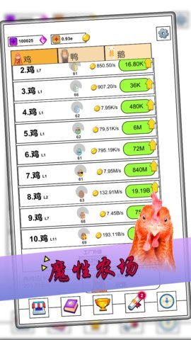 2、你需要不断升级生产线、研究新技术、购买新设备,让蛋下得越来越快,出售的价格越来越高,继续解锁更多的母鸡生产线。