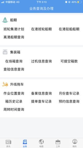 2、易港通还提供了海关放行、转码头撤销申请、码头船期查询、装卸船查询、集卡停牌、单箱信息查询、进出门查询等功能。