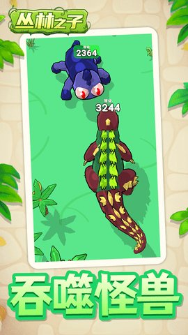 2、丛林之子是一款趣味休闲模拟游戏,从丛林开始,解锁不同的小动物,吞噬丛林中的同类,获得更多进化机会,最终进化为丛林之子。