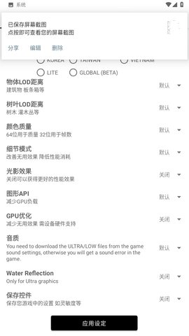 2、提供多种画质级别和效果调整,根据自己的设备性能,自定义选择最适合的设置。