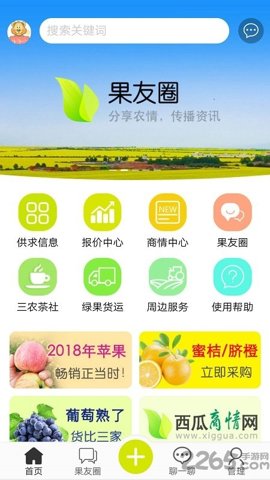 通过首页的搜索栏快速查找供求信息、新闻和果友圈的帖子,大大提升了信息获取的便捷性。