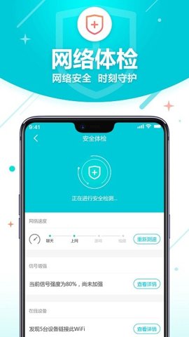1、网络安全测试功能可以有效检测WiFi的安全性,防止其他用户蹭网,让你安心上网。
