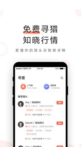 求职者无需主动搜索职位,名企HR和猎头会根据求职者的简历主动发送职位邀请,帮助求职者节省时间和精力。