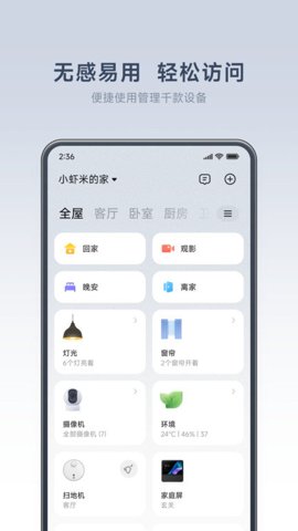 3、小米之家还增加了首页家庭、房间列表高度,显示更多信息,让用户更加方便快捷地使用。