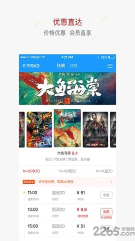 4、卖品在线购买功能,提前选购影院的零食和饮料,享受更优惠的价格,省去排队时间。
