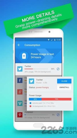 2、耗电排行功能,详细列出各应用的耗电情况,帮助用户识别并管理高耗电软件。