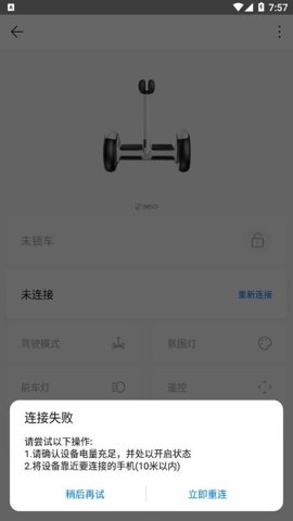 确保平衡车已开启并处于可连接状态,将手机靠近平衡车(10米以内),按照应用内的连接教程进行操作,即可完成绑定。