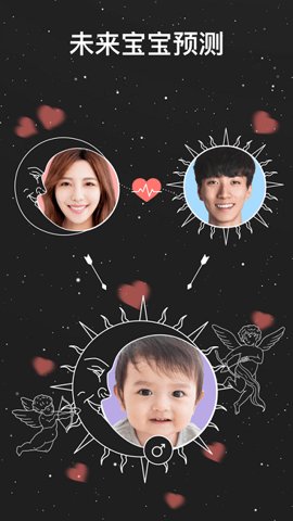 2、宝宝预测功能,用户只需上传父母的照片,软件便能生成未来宝宝的样貌,帮助准父母提前感受亲子之情。